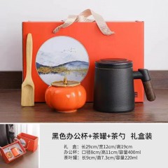 公司年会伴手礼开业活动礼物 橙色粗陶茶具礼盒