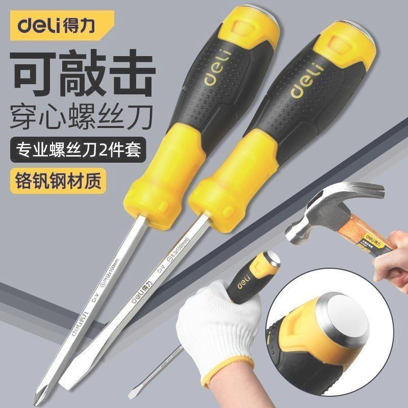 deli得力DL6270071穿心一字螺丝批8×150mm铬钒钢