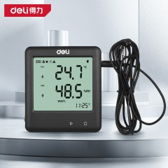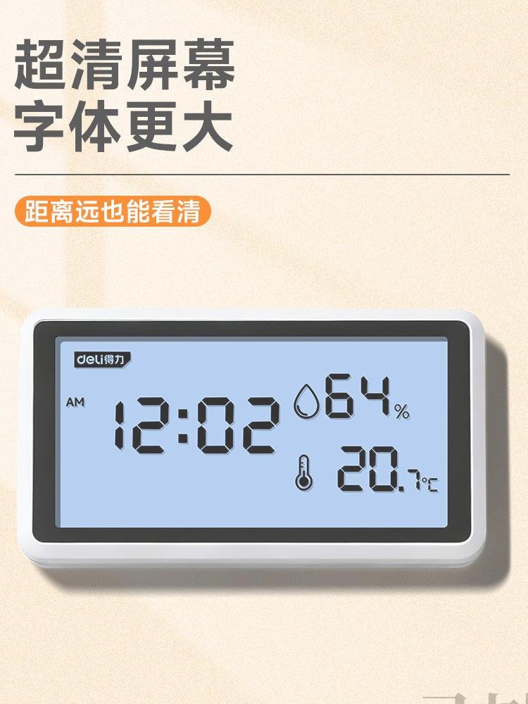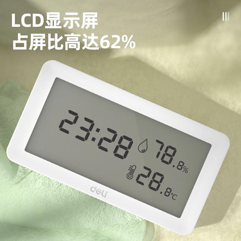 deli得力DL336006温湿度计大屏壁挂日期时间外置探头
