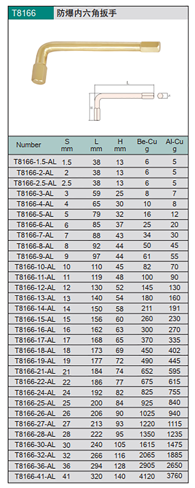 商品名称:桥防 防爆内六角扳手铝青铜 24mm T8166-24-AL