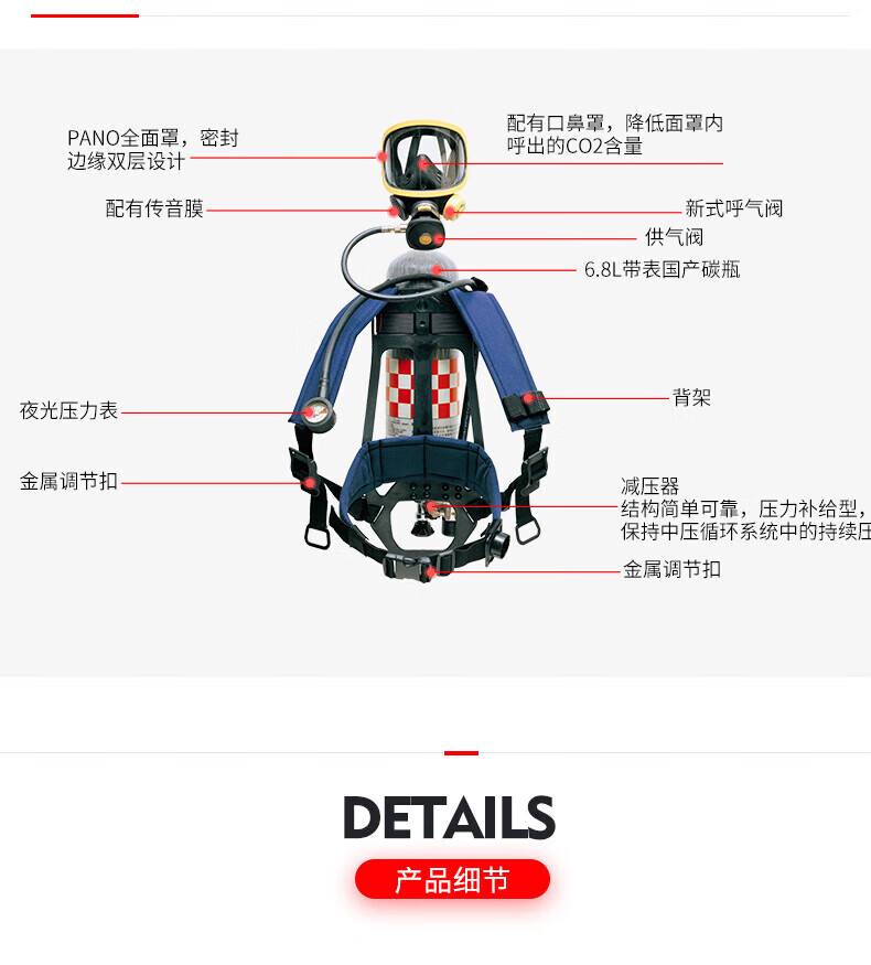 商品规格 :6.8L Luxfer带表气瓶/SCBA123L Pano面罩