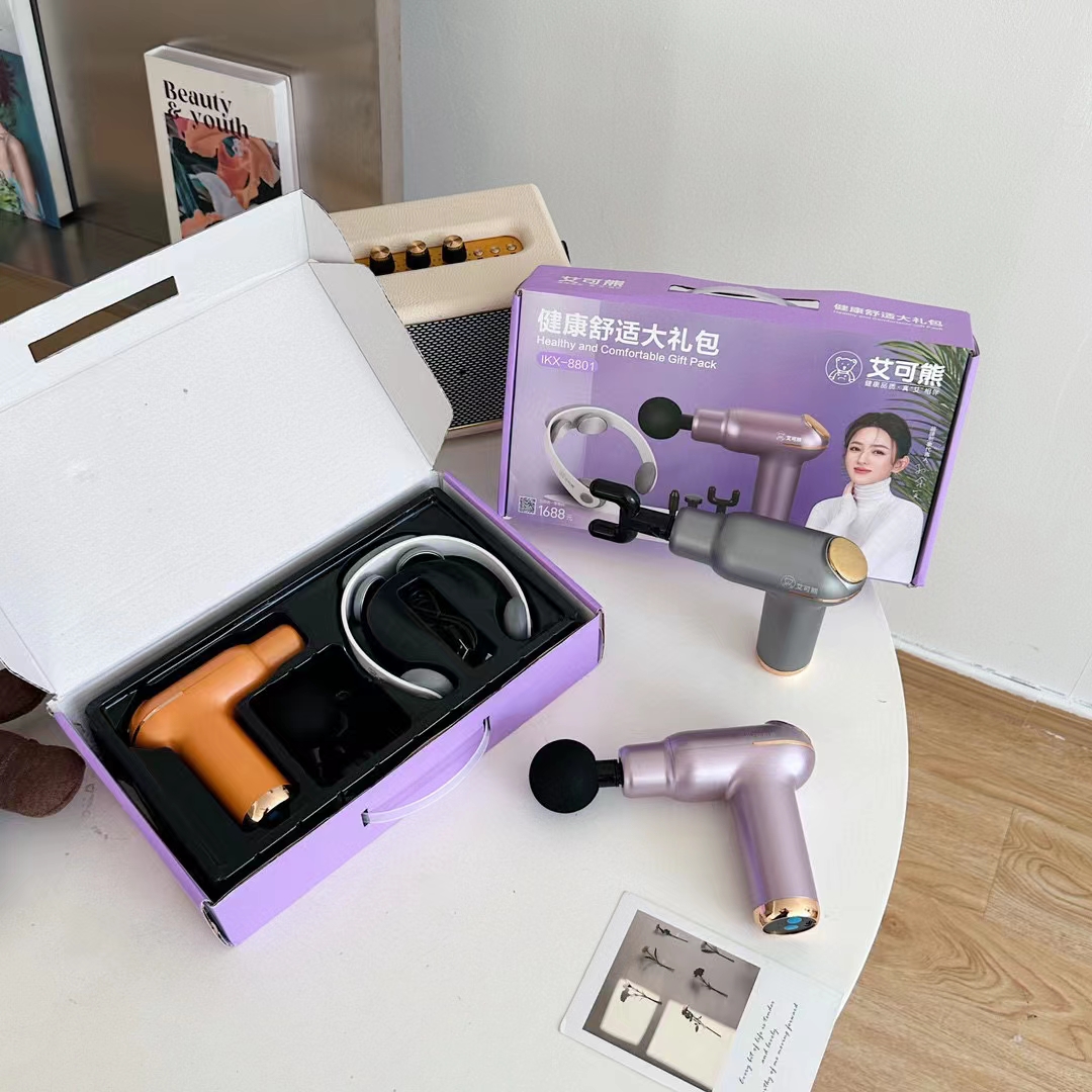 艾可熊颈椎按摩仪+劲膜枪+三个替换头套装礼盒