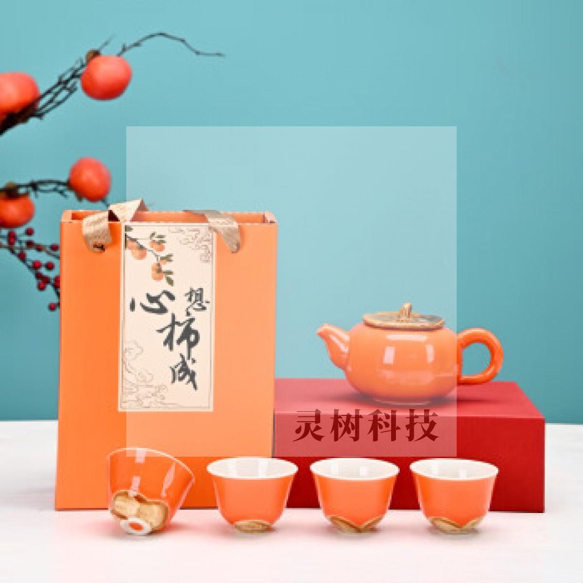 商品名称:事事如意茶具套装茶壶茶杯陶瓷商务伴手礼盒装公司年会开业福利 心想柿橙茶具【1壶4杯】