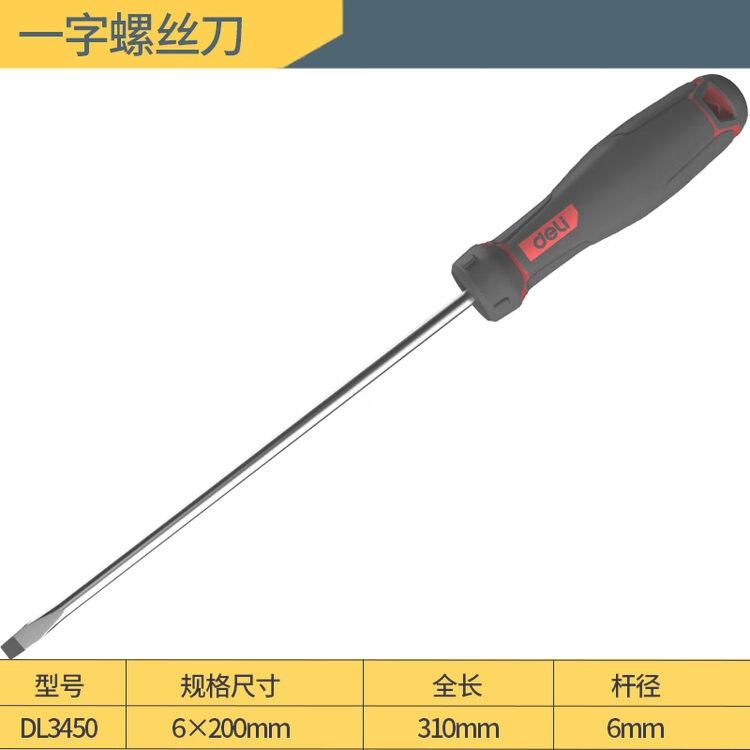 商品名称:deli得力DL3450工业级一字螺丝批6x200mm_S2