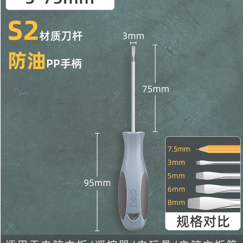 商品名称:deli得力DL6482001防滑柄一字螺丝批8x200mm_S2