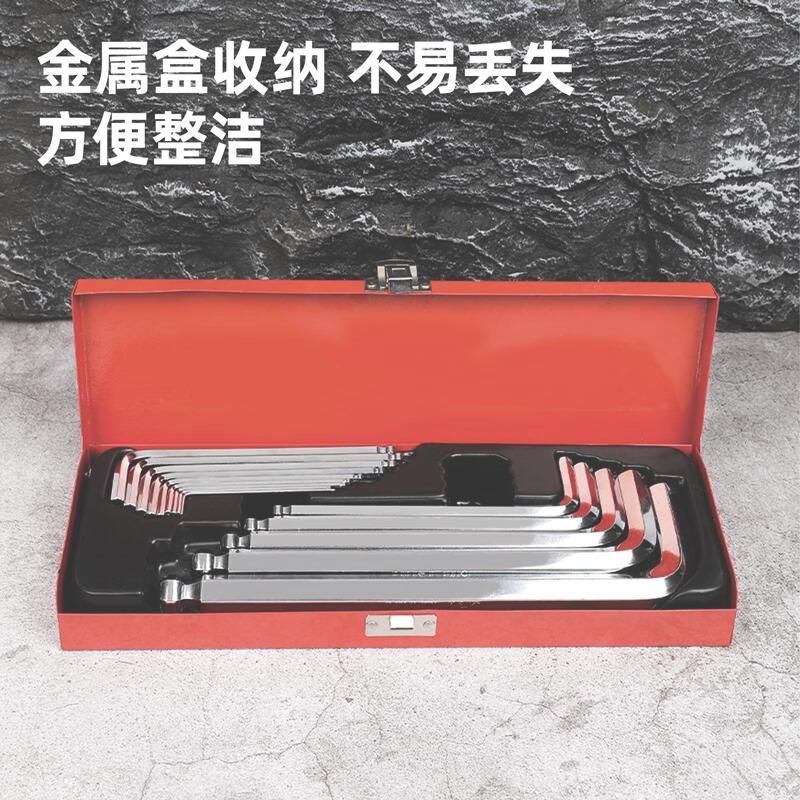 deli得力DL233414G工业级镜面加长球头内六角组套14件套S2