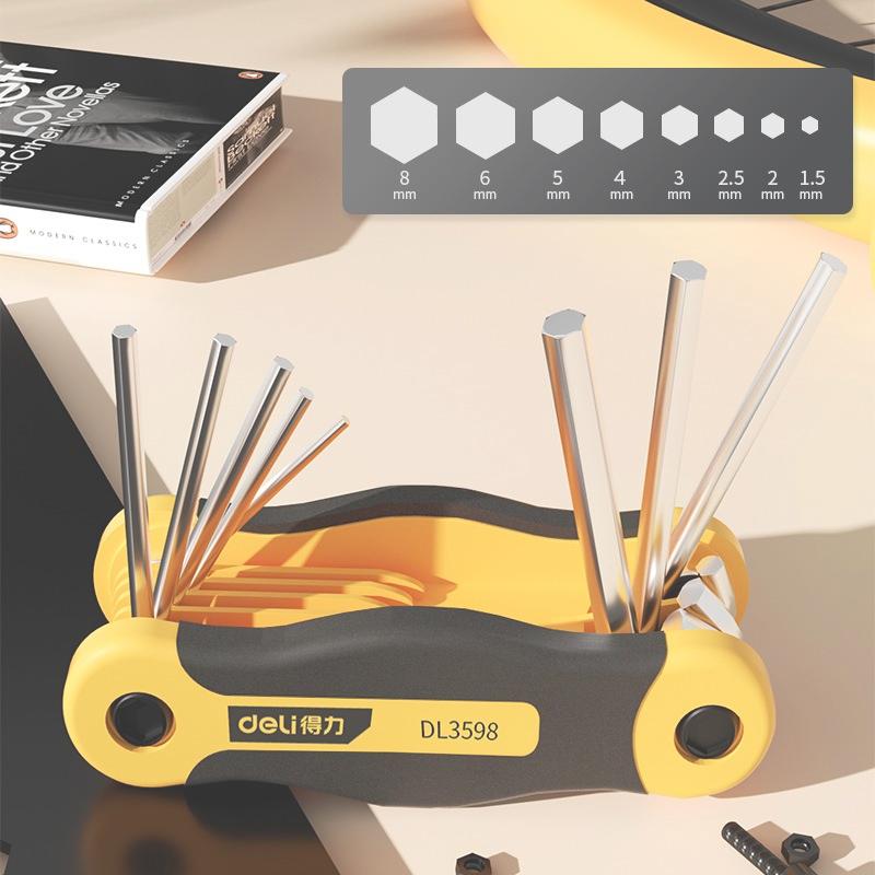 deli得力DL3598折叠平头内六角组套8件套包胶款