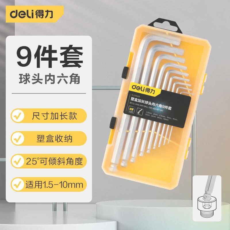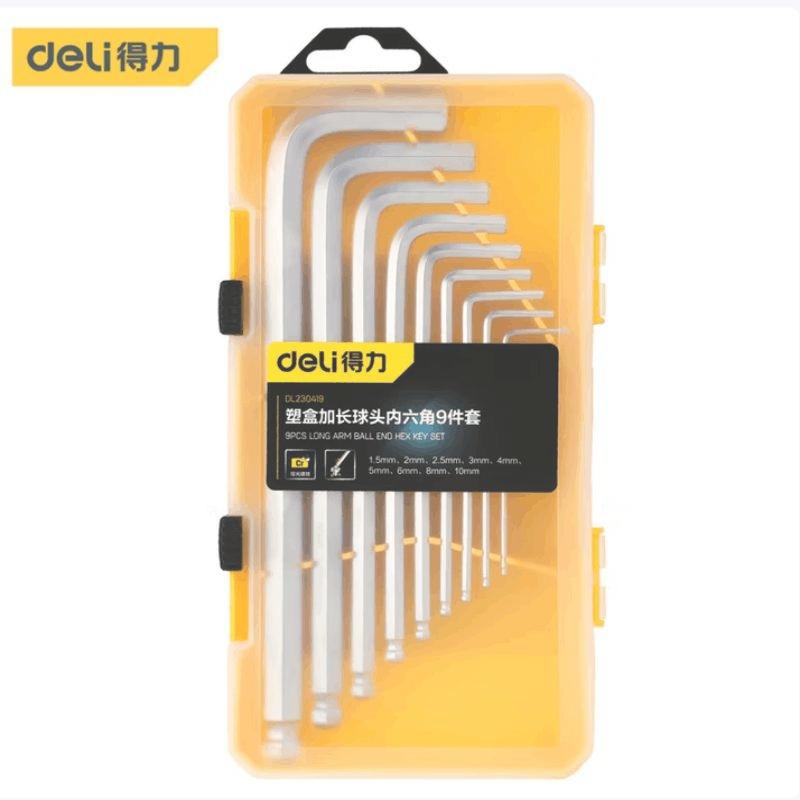 商品名称:deli得力DL230419加长球头内六角组套9件套盒装