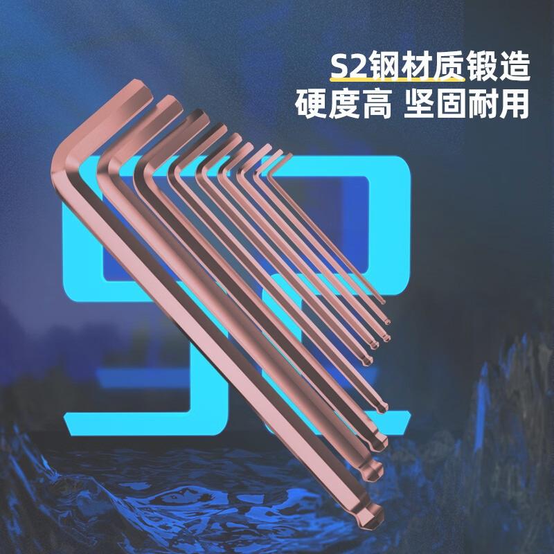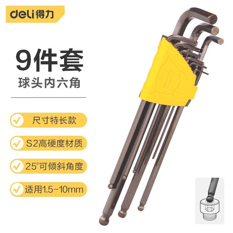 商品名称:deli得力DL230809工业级古铜色特长球头内六角组套9件套S2