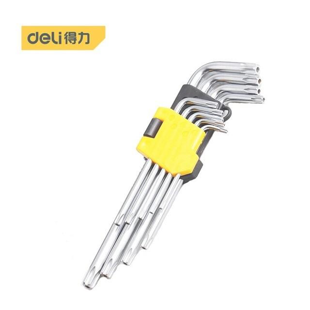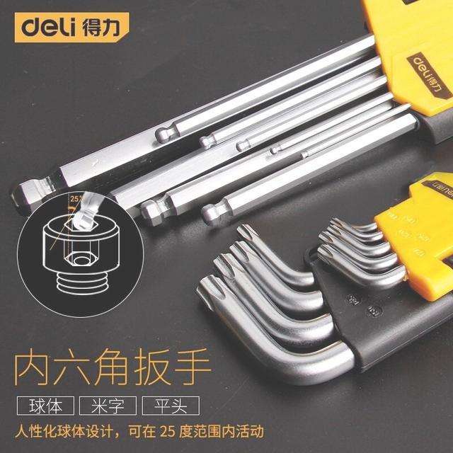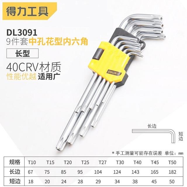 deli得力DL3091G工业级加长中孔花型内六角9件套镜面镀铬(红)(套)
