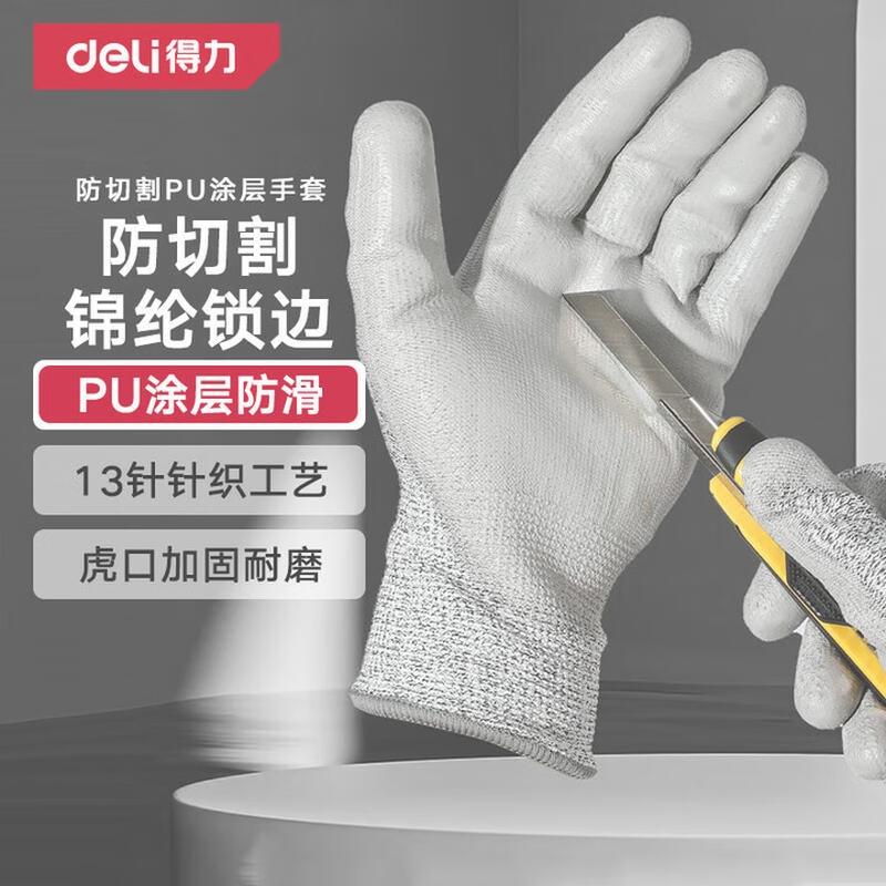 deli得力DL521043_PU涂层防切割手套L码(灰)(副)