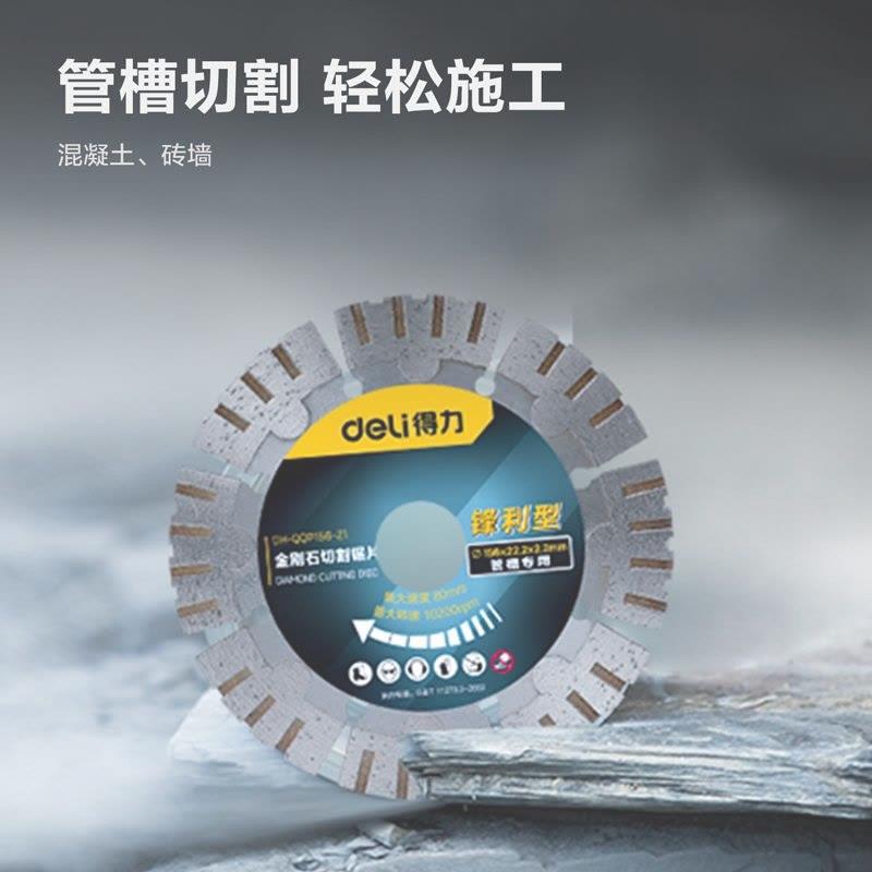 商品名称:deli得力DH-QQP156-Z1金刚石切割锯片156mm墙槽用锋利