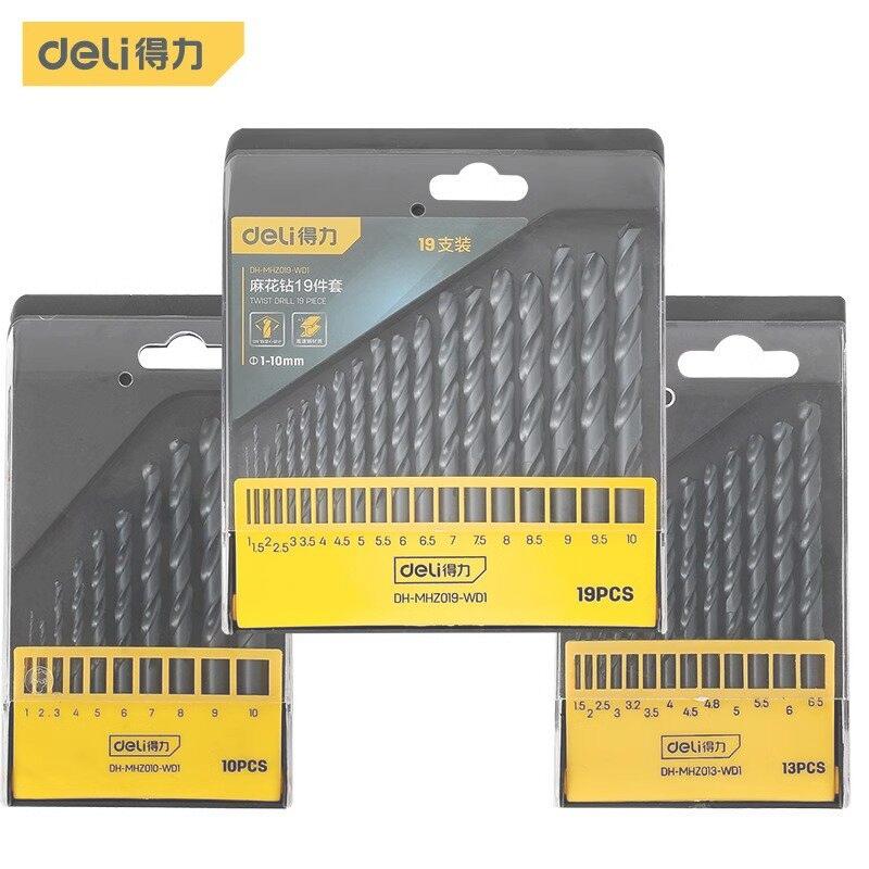 deli得力DH-MHZ013-WD1麻花钻套装13件套1.5-6.5mm黑)盒