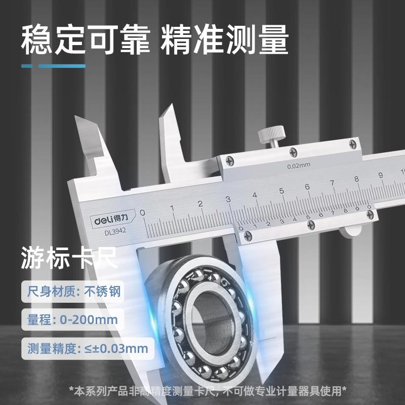 商品名称:deli得力DL3942游标卡尺200mm专业