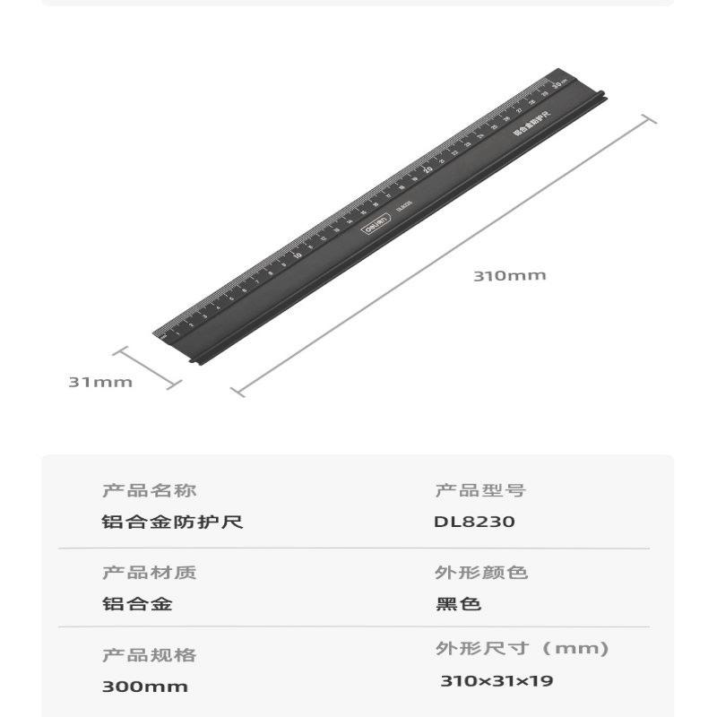 商品名称:deli得力DL8230防护尺300mm铝合金