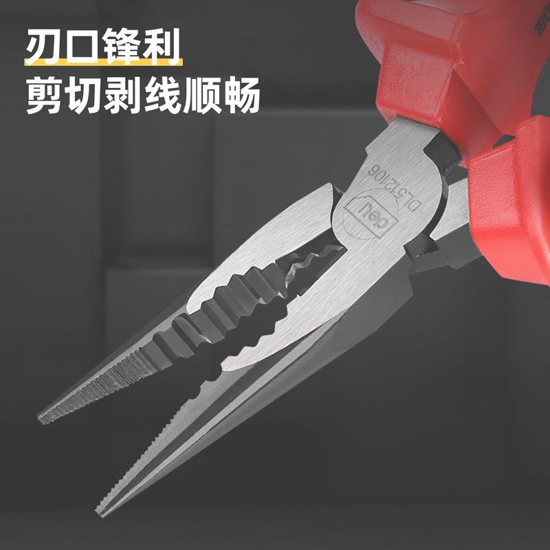 商品名称:deli得力DL512106绝缘省力型尖嘴钳6寸