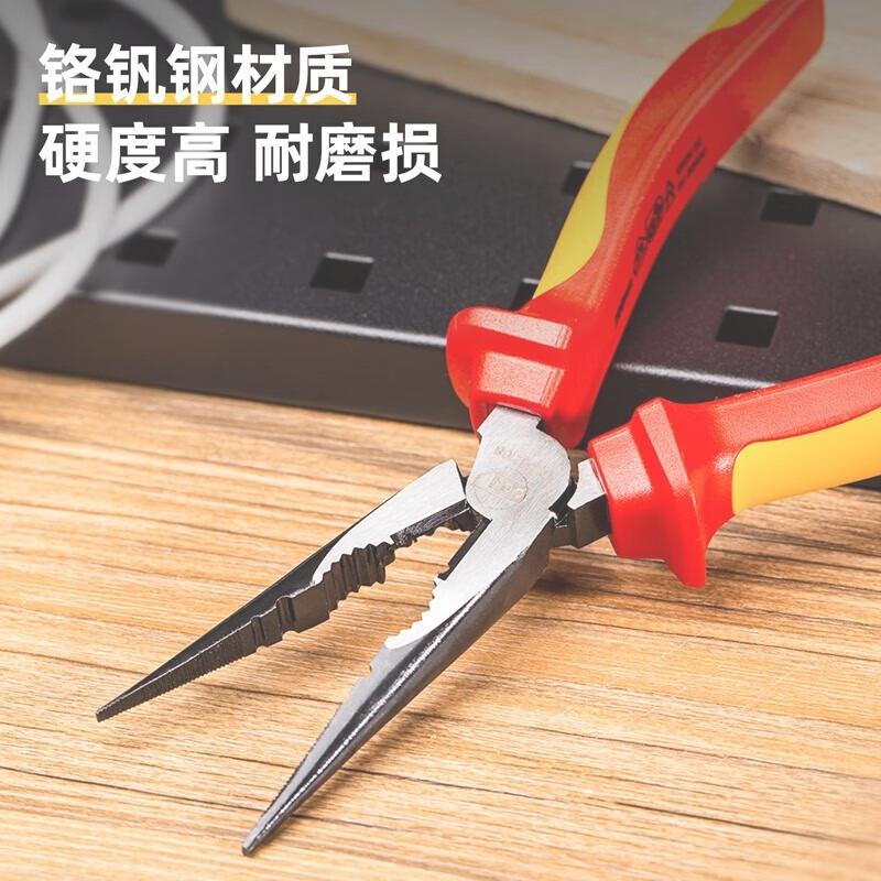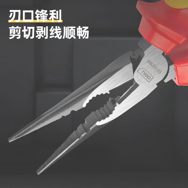 商品名称:deli得力DL512108绝缘省力型尖嘴钳8寸