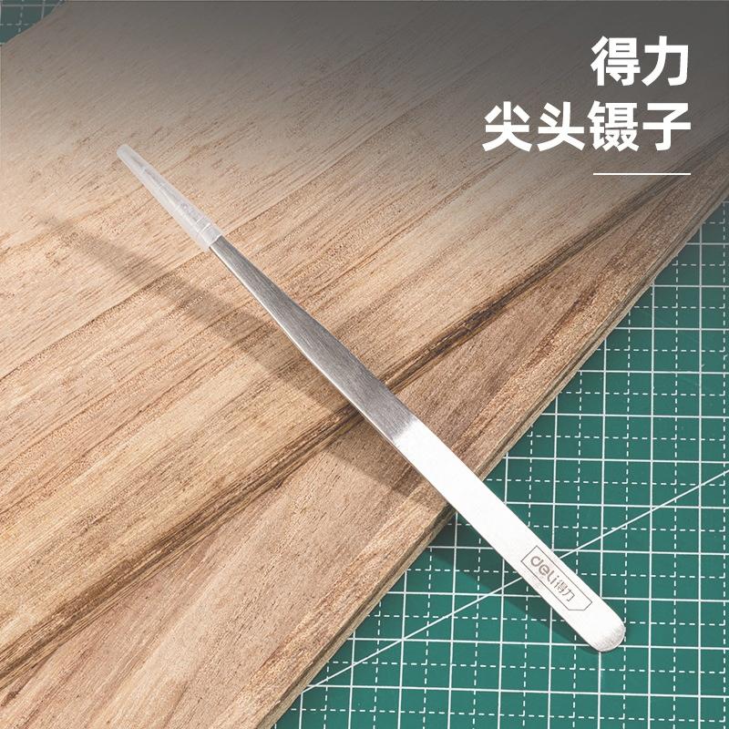 deli得力DL396201镊子140mm尖头不锈钢