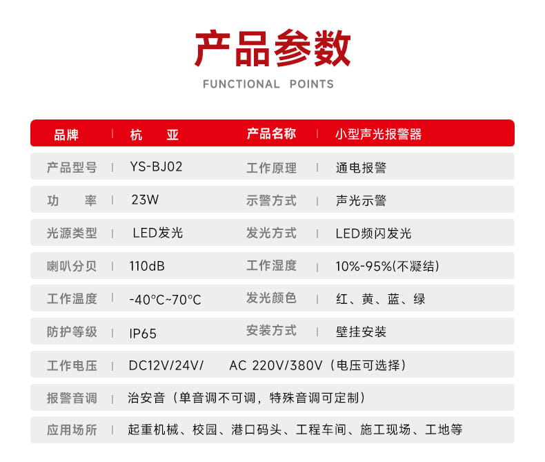 商品名称:YS-BJ02语音声光一体报警器工业车间行车报警器喇叭12V24V220V380
