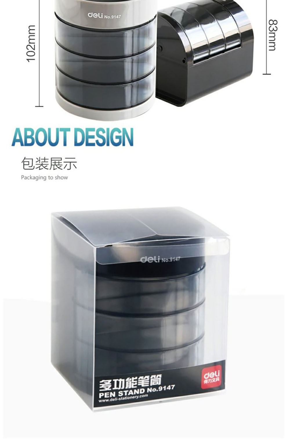 商品名称:得力deli 9147 三层多功能笔筒 9147/83*83*102mm/黑色