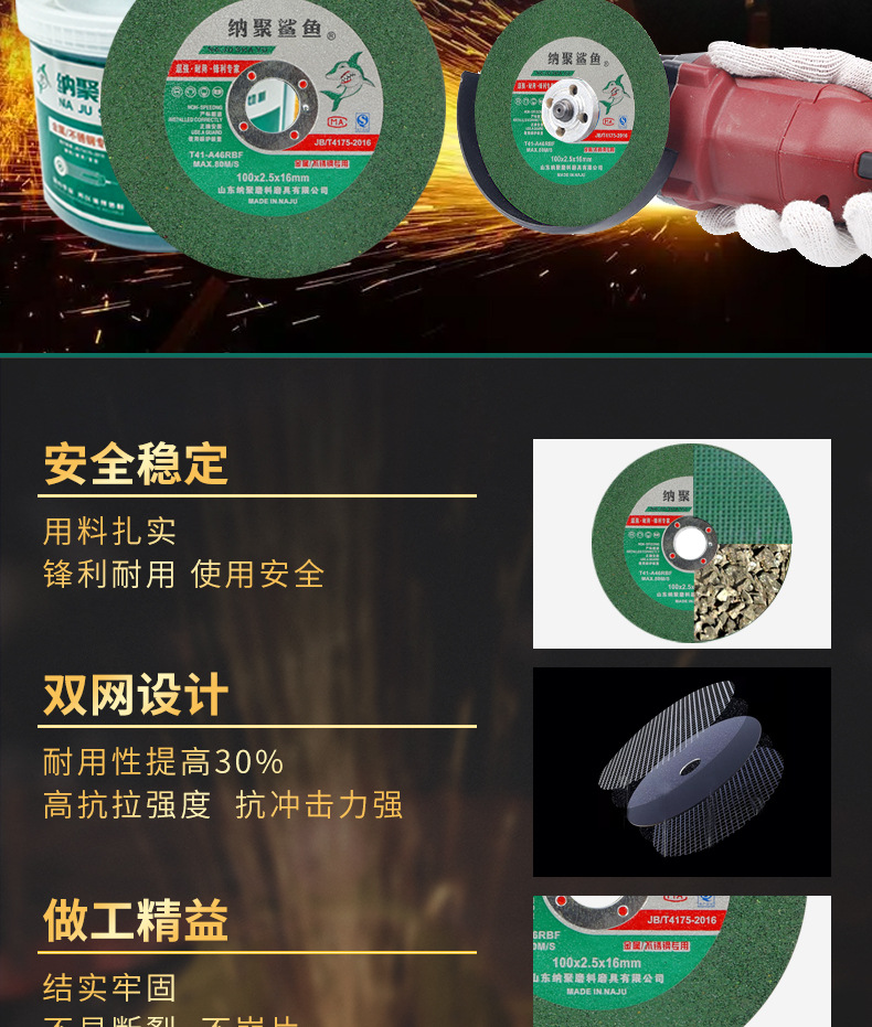 商品名称:100型加厚打磨切割两用 磨切片100*2.5x16单网树脂4寸金属 切割片